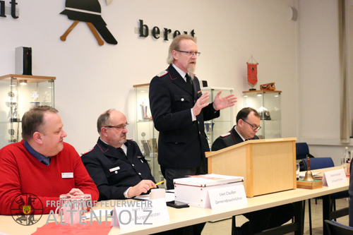 Rainer Kersten eröffnete die Versammlung am 02.02.2018 mit der traditionellen Gedenkminute und übergab das Wort direkt an unsere Gäste. Der stellvertretende Bürgermeister Herr Baasch fasste kurz die gute Arbeit zwischen Feuerwehr und Gemeinde im letzten Jahr zusammen und Uwe Claußen überbrachte stellvertretend für den Kreisfeuerwehrverband Grüße an die Kameraden.